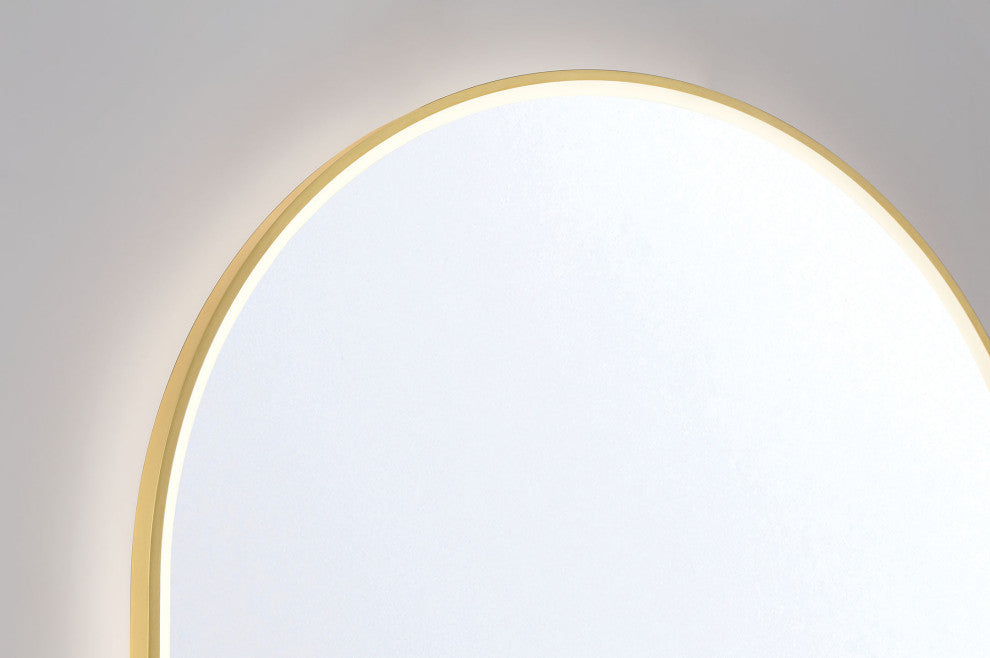 The Linden 24" x 36" Gold LED Mirror brings a refined and classic touch to your home. Ideal for bathrooms or powder rooms, this mirror features a gold finish and integrated LED lighting. Its minimalistic capsule design and energy-efficient lighting ensure both style and function, making it a standout piece in any contemporary space. This product is cETLus certified.•Number of Lights: 1•Bulb Type: LED integrated•Wattage: 70W•LED Color Temperature (K): 3000/4500/6400K•Dimmable: Yes•Bulb Included: Yes•Voltage: 120V•Hardwire or Plug-in: Hardwired