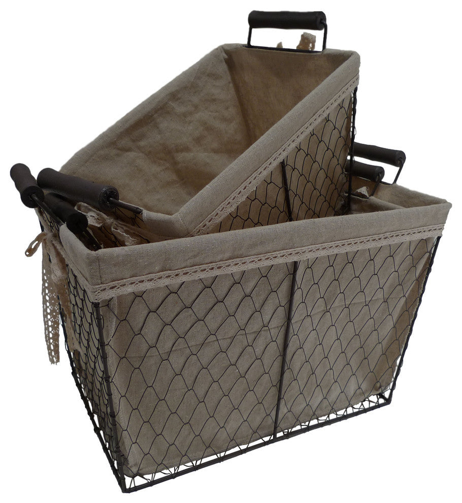 Add a touch of farmhouse charm to your home with the Lined Rectangular Wire Baskets. Perfect for storage or as stand-alone decorative pieces, the Lined Rectangular Wire Baskets are a stunning addition to your living room, bedroom or bathroom. With a striking, black wire body, the Lined Rectangular Wire Baskets feature a tan linen lining that provides a unique contrast against its more industrial body. Simple yet elegant, the Lined Rectangular Wire Baskets are sold as a set of three and will effortlessly complement your farmhouse home decor.
