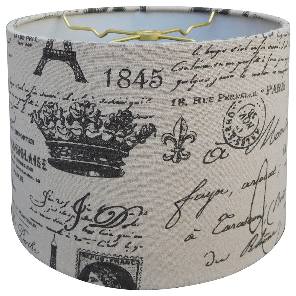 Linen Eggshell and Black Vintage French Print Hardback Lamp Shade