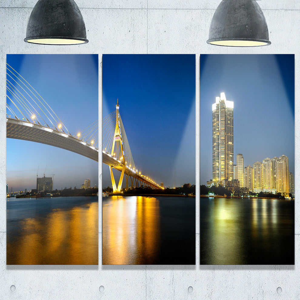 "Lit-up Bhumibol Bridge at Dusk" Metal Wall Art, 3 Panels, 36"x28"