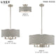 Update your decor with this sleek pendant light design. The angular frame comes in a brushed nickel finish which nicely complements the hand crafted gray fabric hardback shade which holds a 6 bulbs and 1 downlight to maximize your light output.