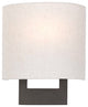 Raise the style bar with a designer wall sconce in a handsome and versatile contemporary manner. This one light wall sconce comes in a bronze finish with a rectangular oatmeal fabric hardback shade.