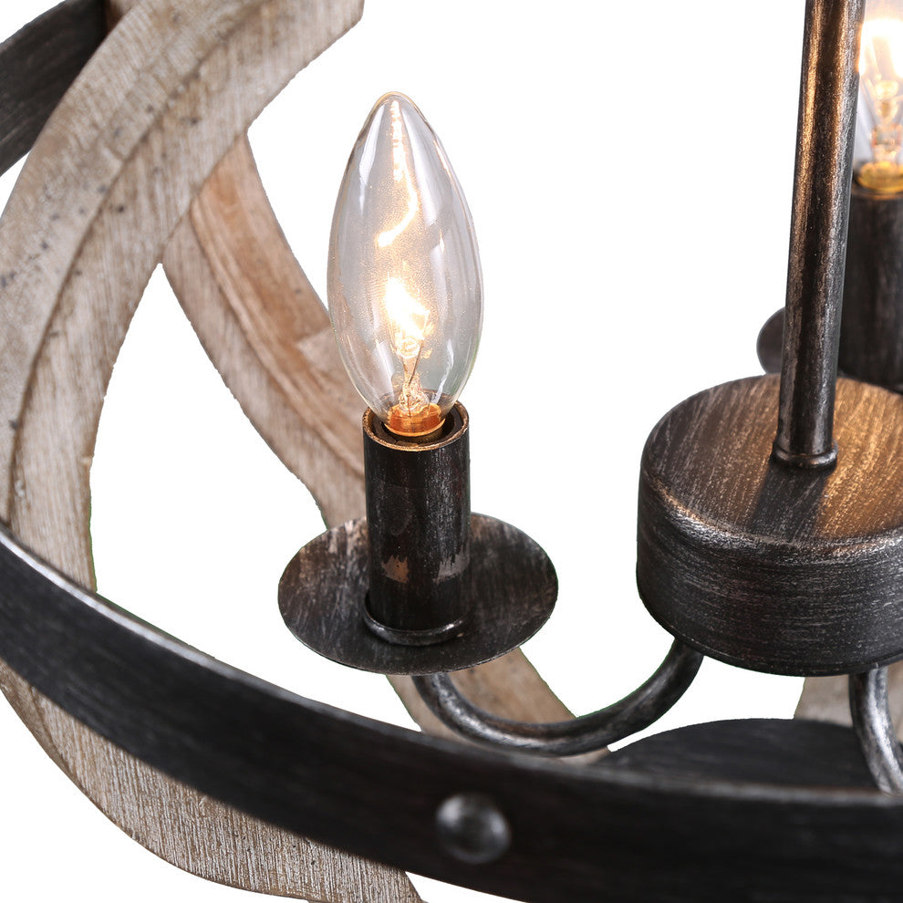 At LNC, we always believe that Classic is the Timeless Fashion, Liveable is the essential lifestyle, and Natural is the eternal beauty. Every product is an artwork of LNC, we strive to combine timeless design aesthetics with quality, and each piece can be a lasting appeal. Lighting is an important part of overall home decor. Pendant lights not only enhance the look of a room, but also serve as the centerpiece of telling the spirit and character of the owner. This chandelier showcases a striking silhouette as the candle clusters glow brightly, adding a bright touch to your home with a natural wood lantern shade, an airy, eye-catching spherical chandelier highlights The natural texture of the wood creates a farmhouse style. Featuring a black metal band, this chandelier is a mix of farmhouse and transitional styles and can be paired widely with different styles of furniture in your home.Features:Model: A03542Material: WoodColor: GrayStyle: FarmhouseFinish: DistressedProduct Dimension: 15"D x 15"W x 19"H(exclude the hanging height)Canopy Dimension: 5"DShade Material: MetalShade Color: Weathered grayShade Shape: GlobeCompatible ceiling types: flat, sloped, slanted and vaulted ceilings Type of Drop: ChainHeight/Vertically Adjustable: YesMaximum Hanging Height: 79"Minimum Hanging Height: 22"Adjustable Height: YesLocation: DryDimmable: Yes, when used with dimmer switch and dimmable bulbsKey Features: Bulb Type: B10 LED Bulb Base: E-26 Maximum Wattage: 60W Number of Bulb: 3 Bulb Included: N Voltage: 120V Mount Type: Ceiling Mounts Assembly Required: Yes Mounting Accessory Included: Yes Power Source: HardwiredProfessional installation recommended