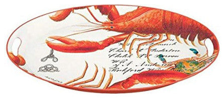 Lightweight oval metal tray with built-in handles. Both beautiful and practical and easy to carry, easy to store, and a joy to use, both indoors and out. Size: 20.5" x 15.25" x 1.6" / 52 cm x 38.7 cm x 4 cm.