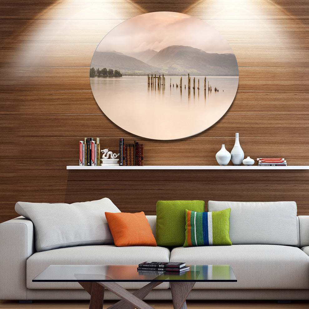 Bring Contemporary Abstraction to your home with this large Circle Metal wall art. This Loch Lomond Jetty and Mountains Metal Artwork makes it the focal point of any room or office.