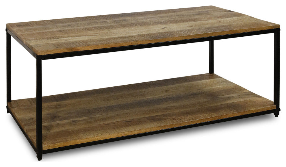 Logan Rectangular Coffee Table With Lower Shelf and Black Iron Frame
