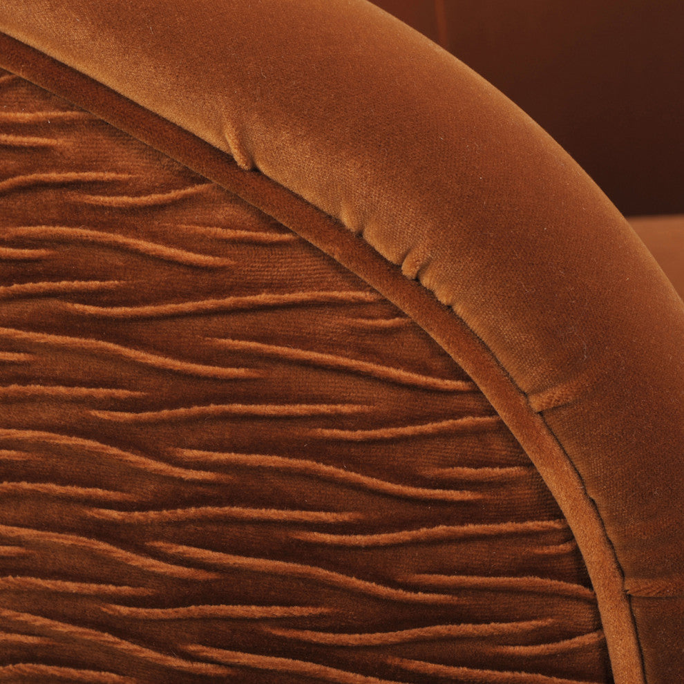 London Ruched Barrel Accent Chair, Burnt Orange Velvet