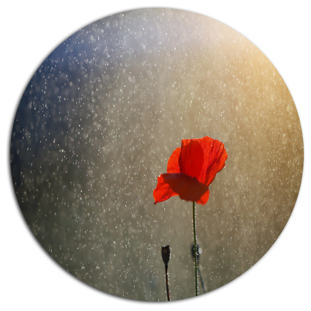 Lone Red Puppy Flower Under Lights, Flowers Round Metal Wall Art, 23"