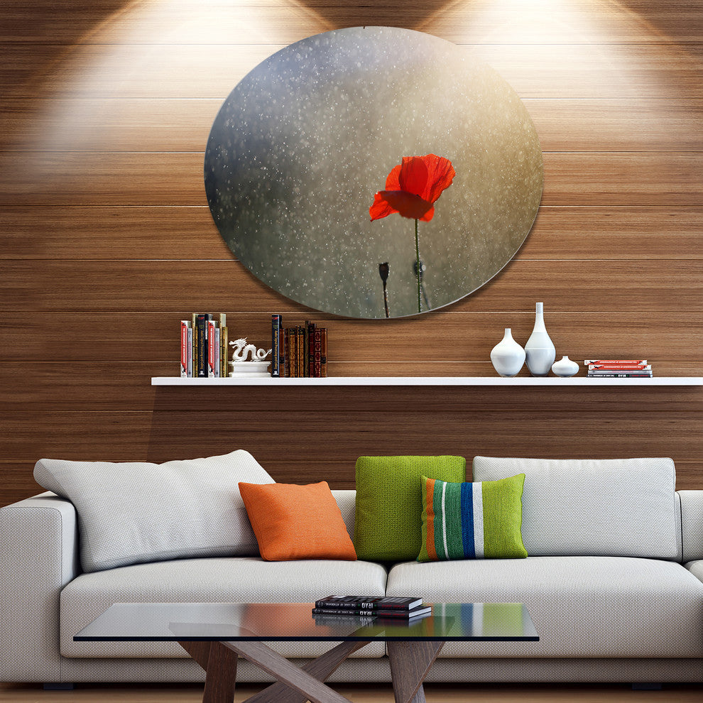 Bring Contemporary Abstraction to your home with this large Circle Metal wall art. This Lone Red Puppy Flower under Lights Metal Artwork makes it the focal point of any room or office.