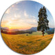 Lonely Tree On Meadow At Sunset, Landscape Photo Round Wall Art, 36"