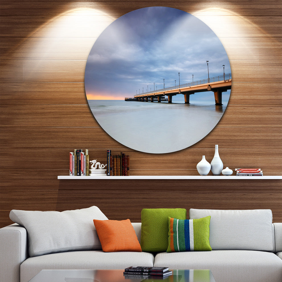 Long Concrete Pier Into Sea, Sea Bridge Round Wall Art, 23"