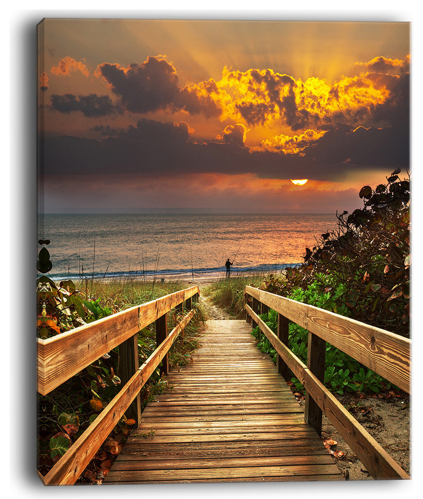 The Long Wooden Stairs into the Sea canvas art print is sure to make an impression on anyone who sees it. This artwork is gallery wrapped around a 1-inch solid wood frame and arrives carefully packaged and entirely ready to hang on the wall. Design Art only uses the highest resolution and pigments to ensure a crisp colorful print that is never faded or pixelated. This artwork is sure to be a conversation starter in any home or office.