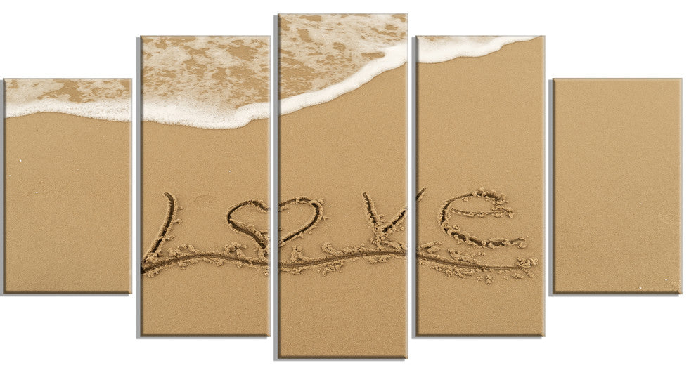 "Love Written On Sandy Seashore" Seascape Wall Art, 5 Panels, 60"x32"