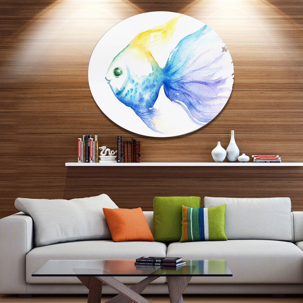 Lovely Blue Fish Watercolor, Animal Round Metal Wall Art, 36"