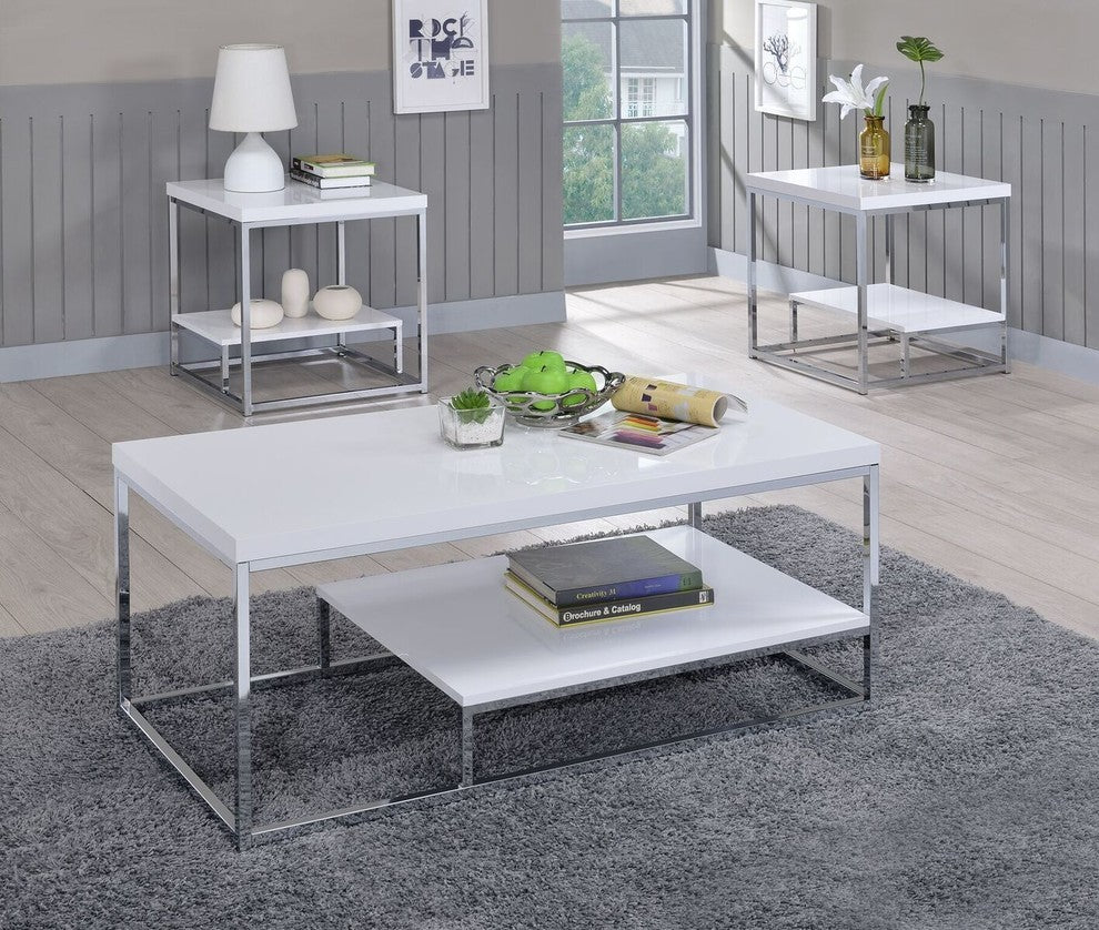 The modern Lucia end table will add the finishing touch to your space. The collection tops and shelves are constructed of a durable Silvershield 3D PVC laminate that has the look of real wood grain and resists heat, moisture and scratches. The sturdy chrome frame accents the crisp white finish. The Lucia end table is 24" x 24" x 24".