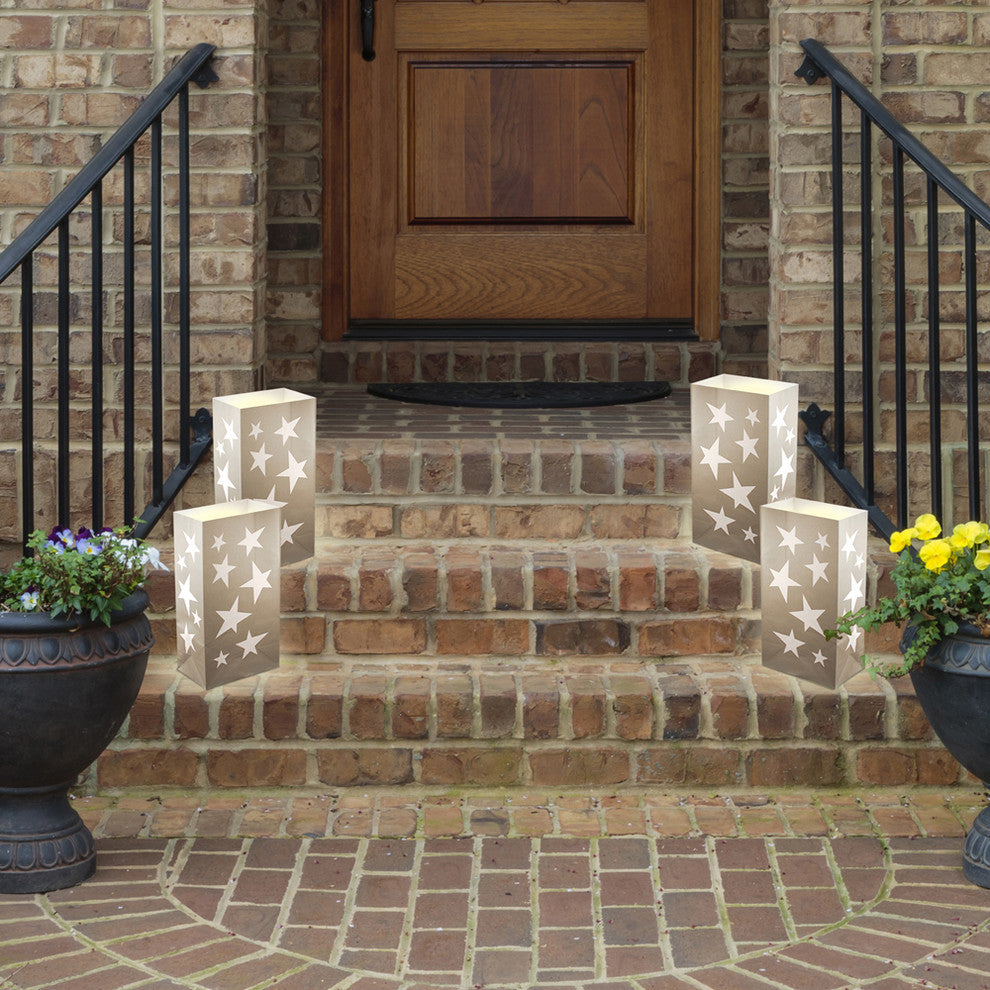 Welcome guests with decorative traditional walkway luminarias. Brighten your walkway, entryway, sidewalk or patio for a special occasion. Just add a LumaBase water filled candle holder or sand and an LED light. They add a decorative flair while lighting the way for guests.