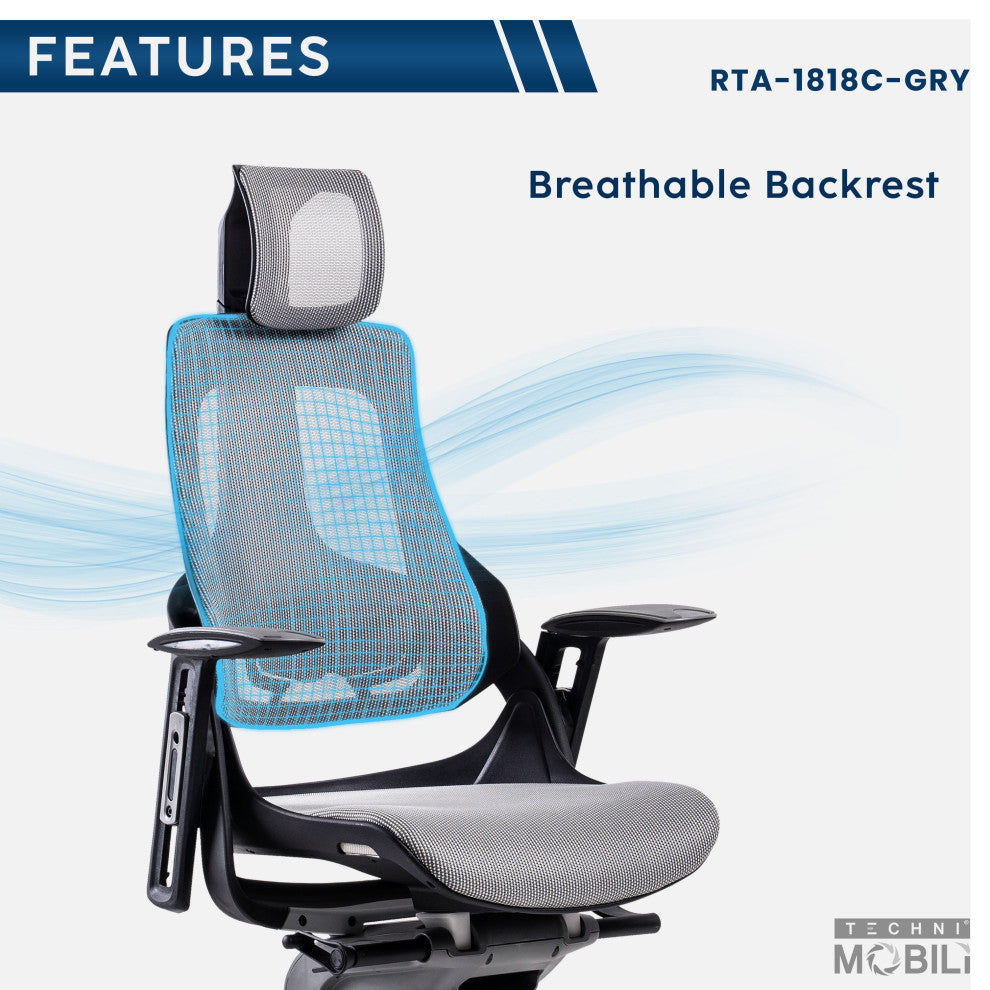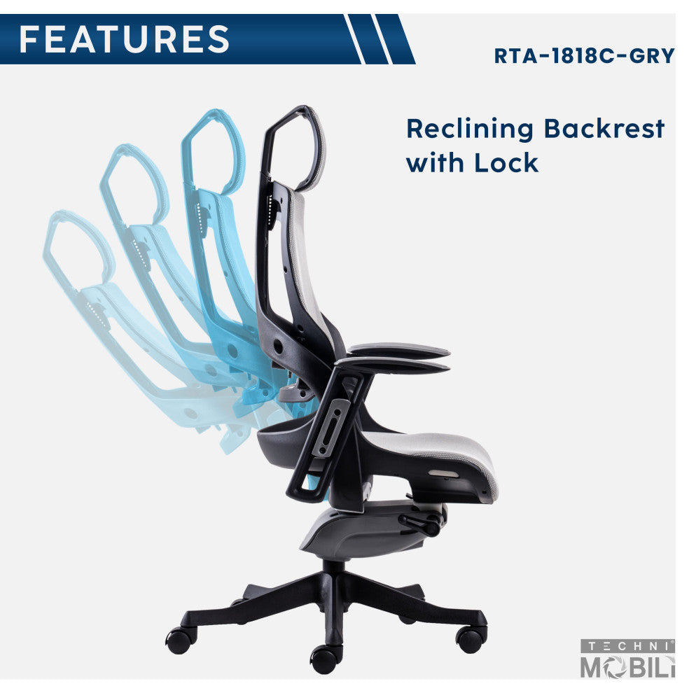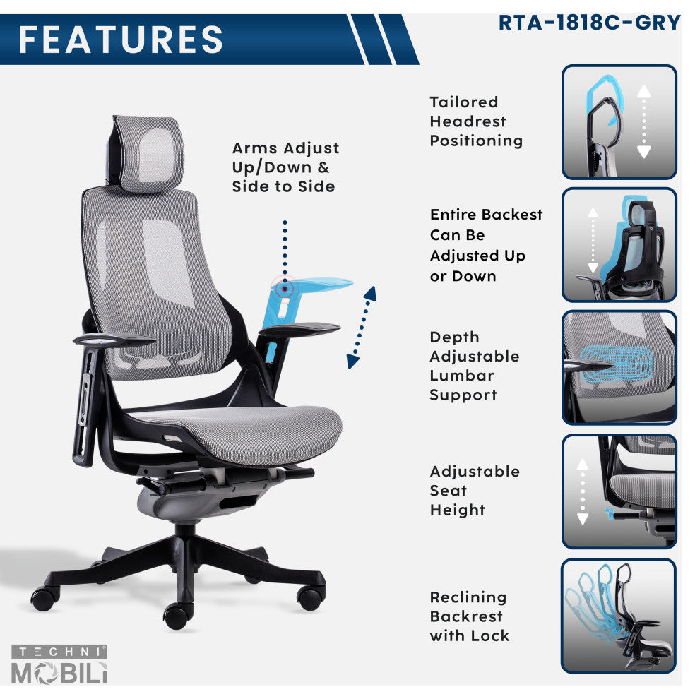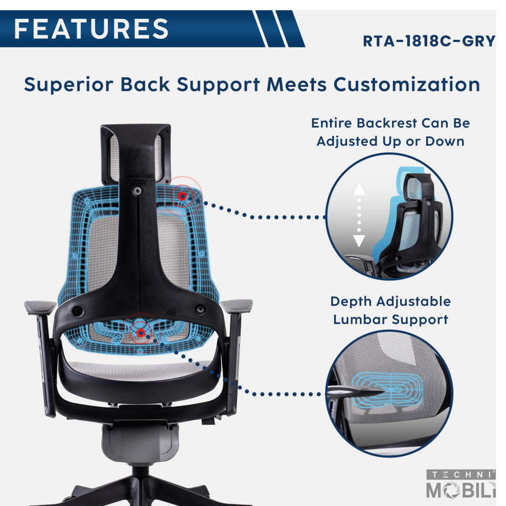 Designed for ultimate comfort and efficiency, the Techni Mobili LUX Ergonomic Office Chair sports a breathable mesh fabric that promotes air circulation, keeping you cool as you work. Customization meets back support with features like depth adjustable lumbar support and a seat back that fully reclines and adjusts up and down. Personalize your experience with the adjustable headrest, armrests, and seat height. The heavy-duty base with dual wheel casters makes it easy to roll across the floor and the chair holds up to 280 lbs. Whether you''re studying, browsing online, or working on a tight deadline, this ergonomic and stylish chair will keep you cool and comfortable throughout your busy day.