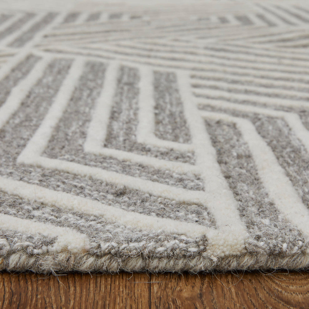 The Feizy Lytton collection is hand tufted in India of wool. These wool rugs are made using a traditional process which makes them long-lasting and durable. Designed with a contemporary geometric pattern in grey and white, the area rug is ideal for high-traffic areas of your home. Naturally stain and water resistant, this collection is perfect for a home with pets and kids.