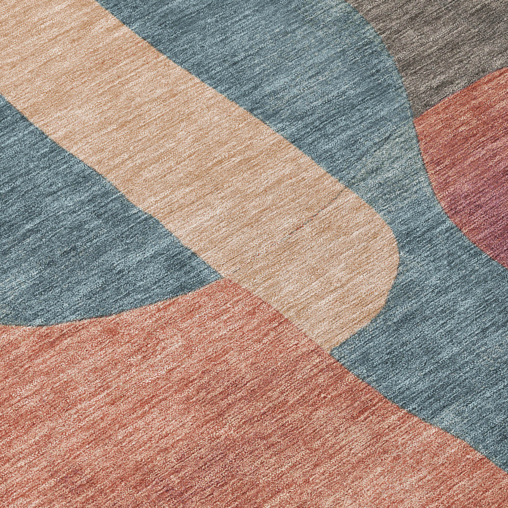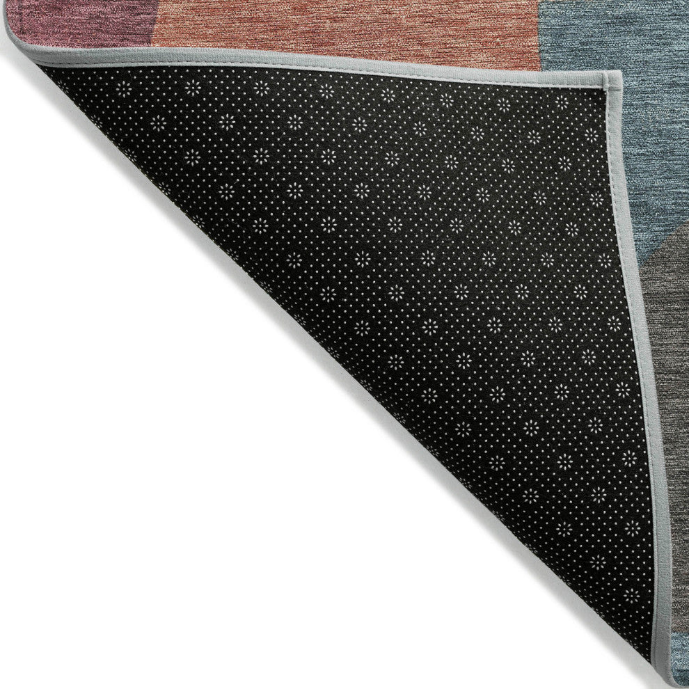 Add a dash of contemporary chic with our transitional rug, where modern freeform shapes meet an abstract art deco pattern. UV stabilized for versatile use indoors or outdoors, it features an ultra-thin profile and non-skid backing to keep costs down by removing the need for a rug pad. Machine washable, this rug is perfectly suited for family and pet-friendly living areas.