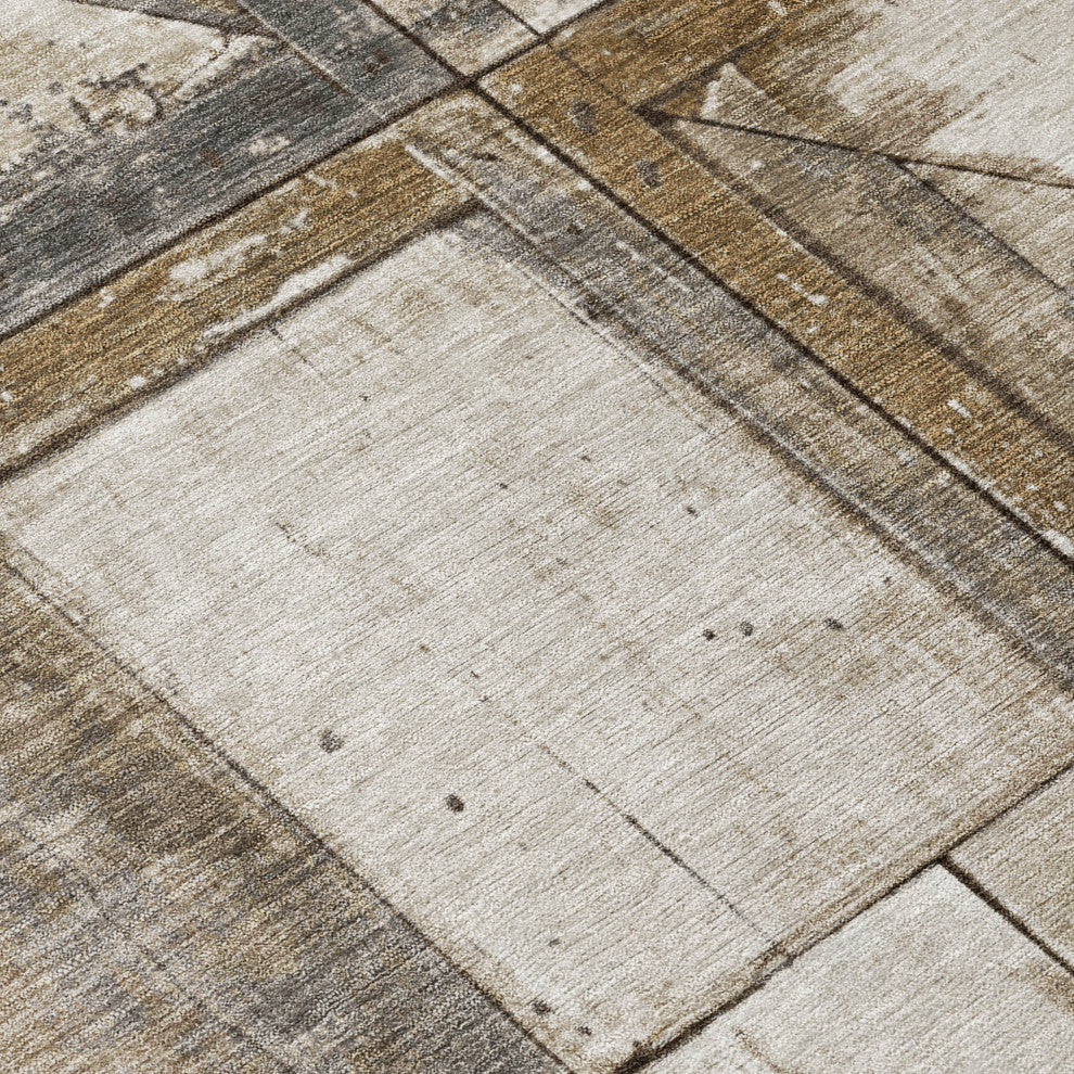 Reimagine your living space with this transitional rug that features a compelling geometric layout of square motifs akin to wood-framed door aesthetics. Its UV stabilized, flat-woven composition makes it suitable for both indoor or outdoor environments, complete with a non-skid backing to forgo extra rug pad expenses. The machine washable feature adds convenience for families and pet owners, making it a practical staple.