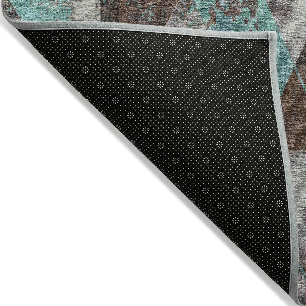 Harmonize your décor with this unique geometric rug, where a band of distressed triangles twirls in spirited stripes. Crafted for all environments with UV stabilization, it shines both indoors and out and features a chic ultra-thin flat-woven layout. Its machine washable quality, along with a non-skid backing, makes it family and pet friendly, reducing extra padding expenses.