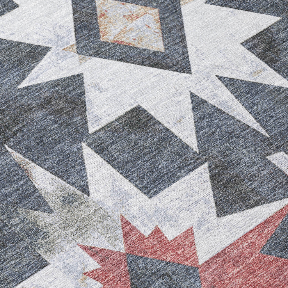Immerse yourself in the stunning design of this transitional-style rug, featuring Aztec-inspired star motifs and geometric accents. Designed for flexible indoor and outdoor use, this UV-stabilized rug showcases an ultra-thin, flat-woven texture with a non-skid backing that eliminates the need for an extra rug pad. Its machine washable nature makes it a practical choice, accommodating the dynamic needs of families with pets.
