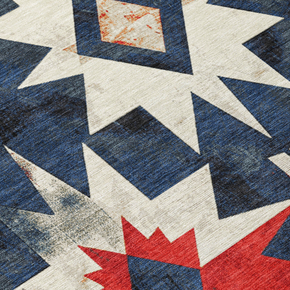 Immerse yourself in the stunning design of this transitional-style rug, featuring Aztec-inspired star motifs and geometric accents. Designed for flexible indoor and outdoor use, this UV-stabilized rug showcases an ultra-thin, flat-woven texture with a non-skid backing that eliminates the need for an extra rug pad. Its machine washable nature makes it a practical choice, accommodating the dynamic needs of families with pets.