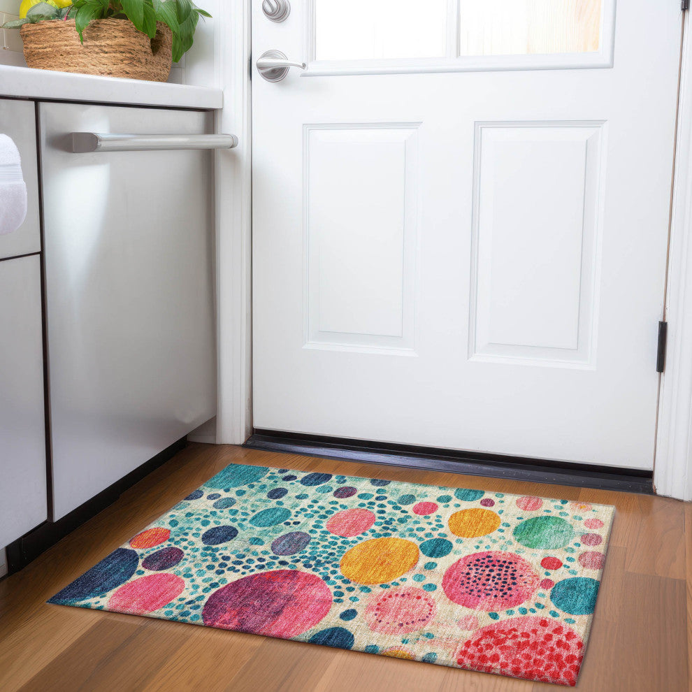 Revitalize your living space with this engaging transitional rug that displays hand-drawn circles in varying sizes, adding dynamic movement to any room. Suitable for indoor and outdoor environments, the UV-stabilized fibers resist wear, and the integrated non-skid backing simplifies setup by removing the need for extra rug pads. With its machine washable feature, it''s a worry-free investment for households with children and pets.