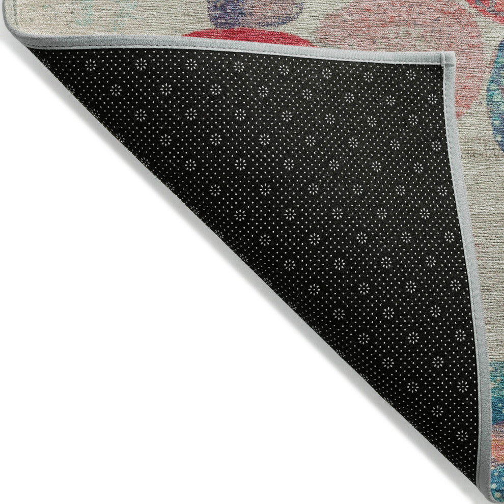 This transitional rug sets the mood with its charming geometric design, highlighted by small circles dotted with intricate patterns. Crafted for seamless indoor and outdoor use through UV stabilization, it''s versatile enough for all settings. Enjoy its non-skid backing for budget-friendly stability paired with the ease of machine washability, making it perfect for homes with kids and pets.
