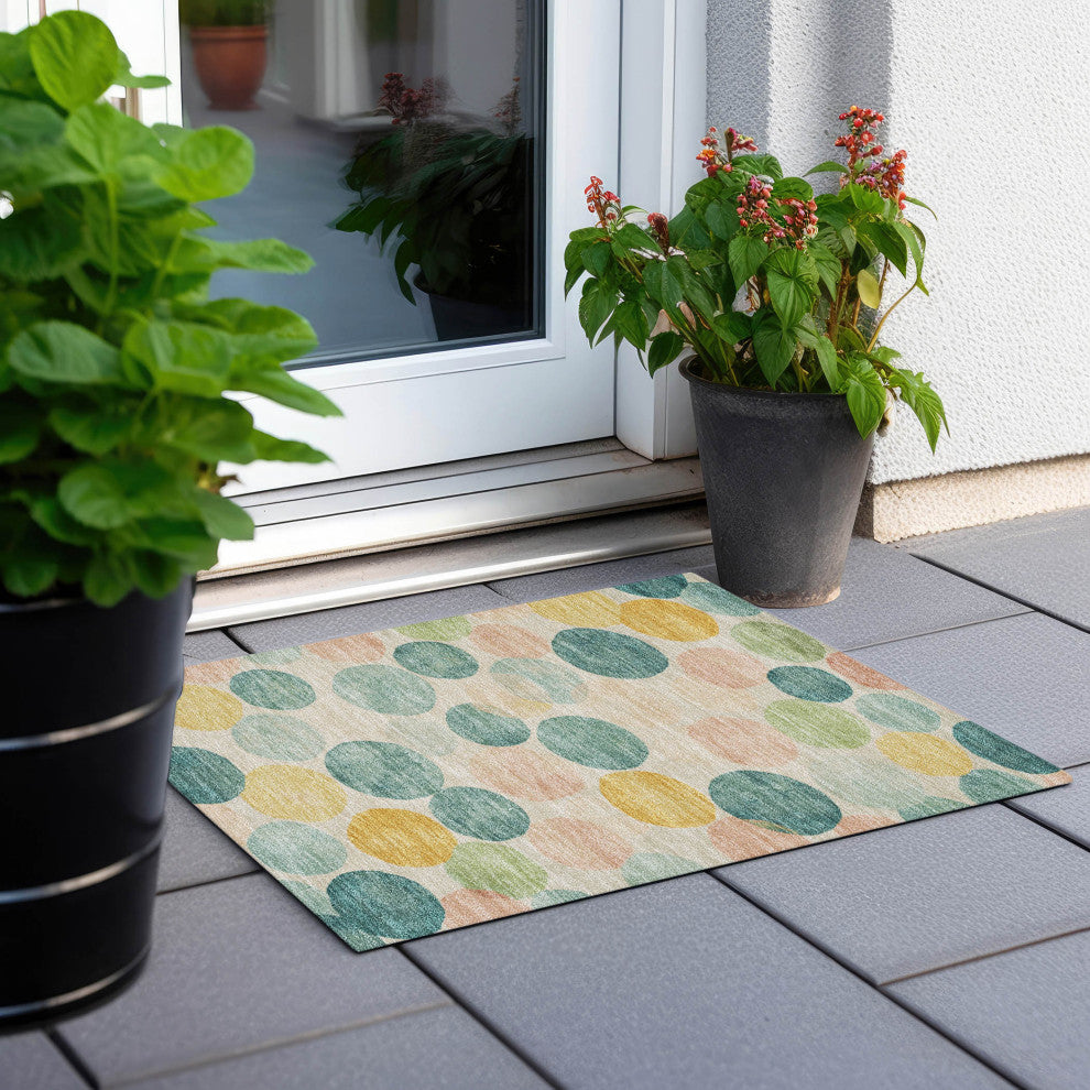 Experience the artistic flair of our transitional geometric rug, featuring a dynamic array of free-form circles. Its UV stabilization allows for versatile use both indoors and outdoors, while its machine washable design makes it ideal for lively households with kids and pets. The integrated non-skid backing ensures stability without the need for an additional pad, reducing overall costs.