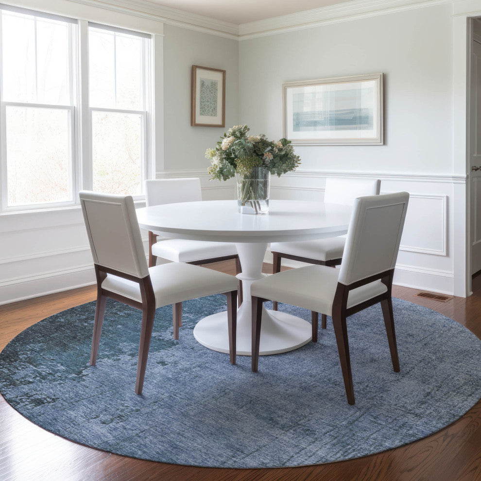 Machine Washable Indoor/Outdoor Chantille ACN1912 Blue 8' x 8' Round Rug