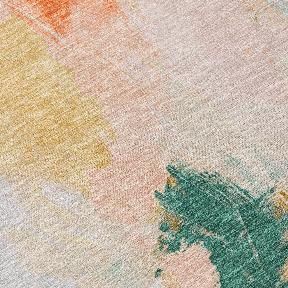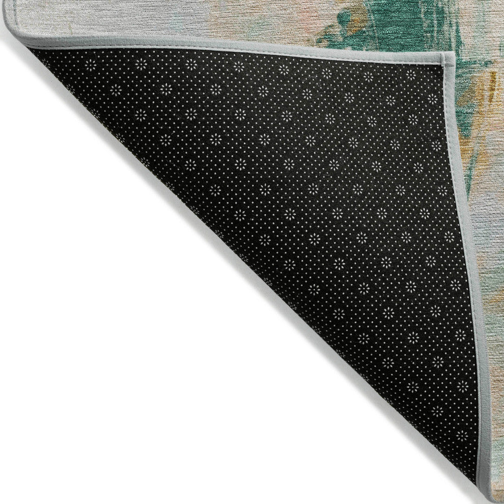 Unveil the artistic flair of this transitional rug, boasting an abstract pattern enriched by a paint stroke motif for a textured finish. Its ultra-thin construction features a non-skid backing, cutting costs by removing the necessity for a rug pad. Suitable for both indoor and outdoor areas, it''s UV stabilized and machine washable, perfectly accommodating families and pets.