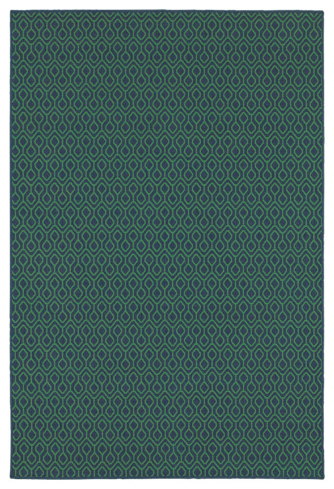 Madelina Odgee Design Navy and Green Indoor or Outdoor Area Rug, 6'7"x9'6"