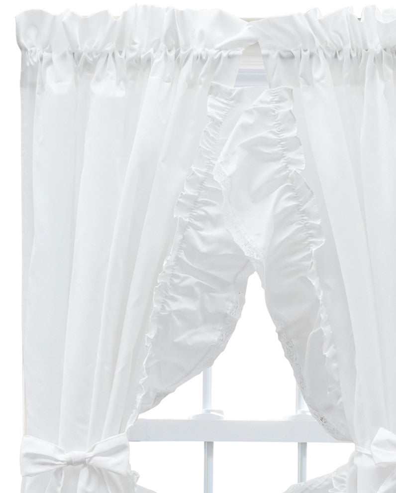 Madelyn Ruffled Victorian Priscilla Pair with Tiebacks, White, 100"x63"