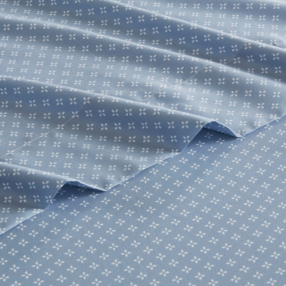 Create a calming oasis in the bedroom with the Madison Park Essentials bed-in-a-bag. This beautiful comforter set features a blue and grey watercolor floral print across the center of the white bedding, complete with matching shams. The included blue sheet set features a coordinating white diamond design to complement the soft and cozy comforter''s look. Included in the set is 1 comforter, 2 shams (1 in Twin), 1 flat sheet, 1 fitted sheet, and 2 pillowcases (1 in Twin). The fitted sheet has elasticity that allows it to fit up to 16" (14"for Twin size) mattress depth. This set is machine washable in a large capacity commercial washer/dryer for best care.FEATURESBed in a Bag Set includes comforter, 2 shams (1 in Twin), 1 flat sheet, 1 fitted sheet, 2 pillowcases (1 in Twin)Soft brushed microfiber print comforter and shams; 100% Polyester fillingWatercolor floral print with coordinating diamond design microfiber sheet setFitted sheet fits up to 16"(14"for Twin size) mattress depth, comes fully elasticized for better coverage and fitMachine washable in large capacity commercial washer/dryerItems may come in compressed packaging to ensure efficient shippingItems will need to be fluffed up and steam ironed if compressedHypoallergenic polyester comforter filling contains no allergens and is dust proofMATERIALSComforter/Sham: 100% polyester microfiber printedFill: 100% polyesterSheet Set: 100% polyester microfiber printedSIZE 1 Comforter:78"W x 86"L2 Standard Shams:20"W x 26"L (2)1 Flat Sheet:81"W x 96"L1 Fitted Sheet:54"W x 75"L + 14"D2 Standard Pillowcases:20"W x 30"L (2)