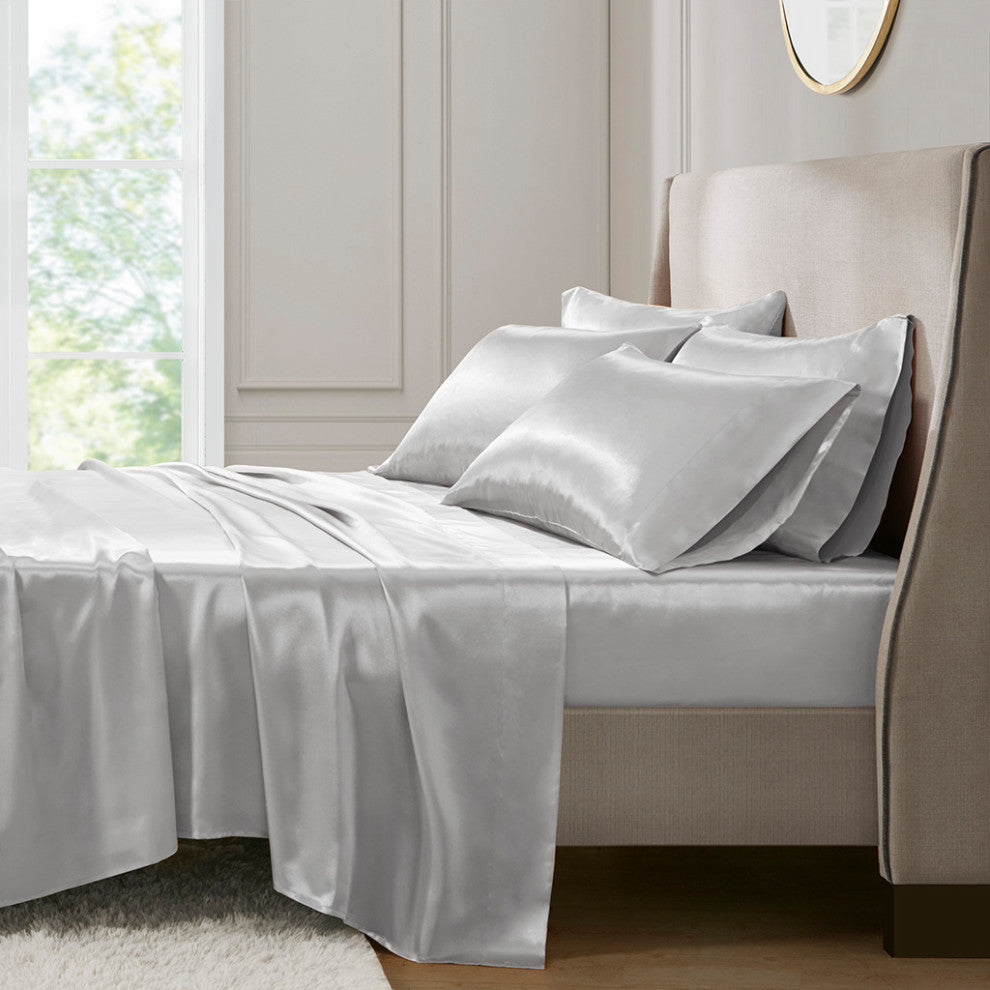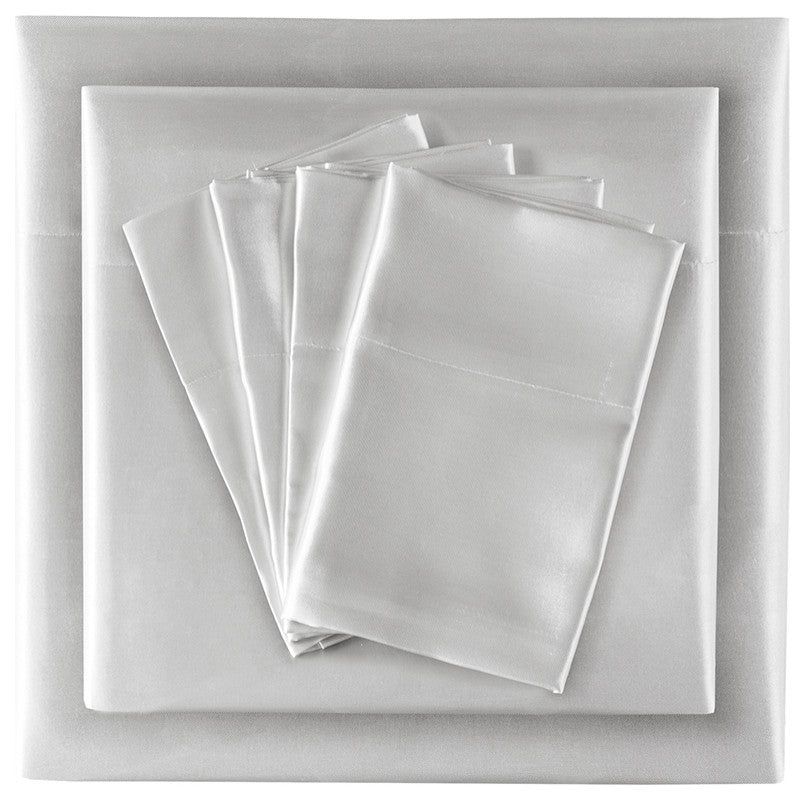 Madison Park Essentials Satin Luxury 6 PC Sheet Set, Light Grey
