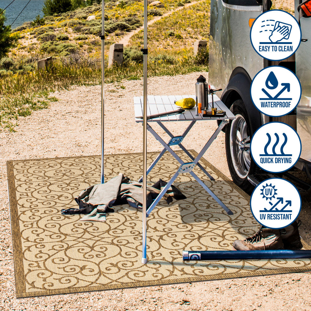 With its filigree design inspired by Spanish wrought iron, our Boho-chic rug adds eclectic style to an outdoor porch or patio. Varied tones of beige and ivory mingled with a deep brown pattern give this rug a hand-woven, vintage vibe. The flatweave design is great for high-traffic spaces indoors too.Features:• Flat-weave construction of 100% polypropylene• Beige and brown with a handwoven mingled texture• Water resistance with 0.19" pile• 100% Polypropylene• No backing, use of rug pad is recommended (sold separately)• Power Loomed in Turkiye• Actual Dimension: 9 ft x 9 ft. Round• Color: Beige/Brown• Thickness measures: 0.19 in.• Available in multiple sizes and/or colorsRug Care:• Vacuum regularly and spot clean as needed; avoid direct and continuous exposure to sunlight; use brushless vacuum; remove spills immediately; if liquid, blot with clean, undyed cloth by pressing firmly around the spill to absorb as much as possible; for hard to remove stains, professional rug cleaning is recommended; store in a dry, well ventilated area and rotate for consistent wear• Packing and shipping may cause temporary creases in rugs, which will flatten out after a week on the floor; to expedite the process, try back-rolling your rug before laying it down, and then allow ample time for the remaining creases to relax• Please Note: Due to differences in monitors, some rug colors may vary slightly. Lengths and widths may vary from the published dimensions. Patterns may vary slightly according to shape and size selected.About us:Style your floors with JONATHAN Y. By combining fine craftsmanship and design, this New York creative studio is bringing fashion to your floors. The collection mixes sustainable organic materials, vibrant colors and trend worthy styles to create JONATHAN Y''s distinctive catalog of rugs.