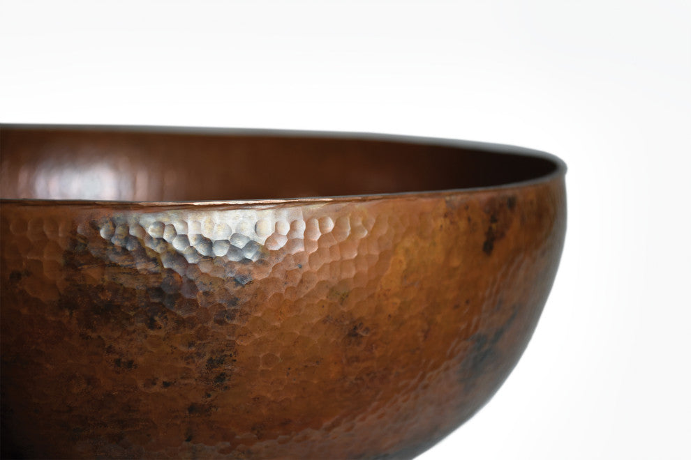 Handcrafted from high-quality recycled copper, the Maestro Oval vessel sink embraces simplistic splendor. Its above-the-counter application gracefully showcases a sleek hammered finish, making it the perfect presentation piece for bathrooms of any style. Thousands of precise hammer strikes create this one-of-a-kind, functional work of art.Features:-Living finish that will patina over time-Constructed of 15-gauge hand-hammered copper for lasting elegance and durability -Oval basin couples functionality with aesthetic appeal-Vessel installation provides a focal point for your design-Hand-hammered surface provides beautiful texture and visual impact-1.5" drain opening-UPC/cUPC compliant-Covered under Native Trails limited lifetime warranty-Clean with mild, non-abrasive soap and cleaners