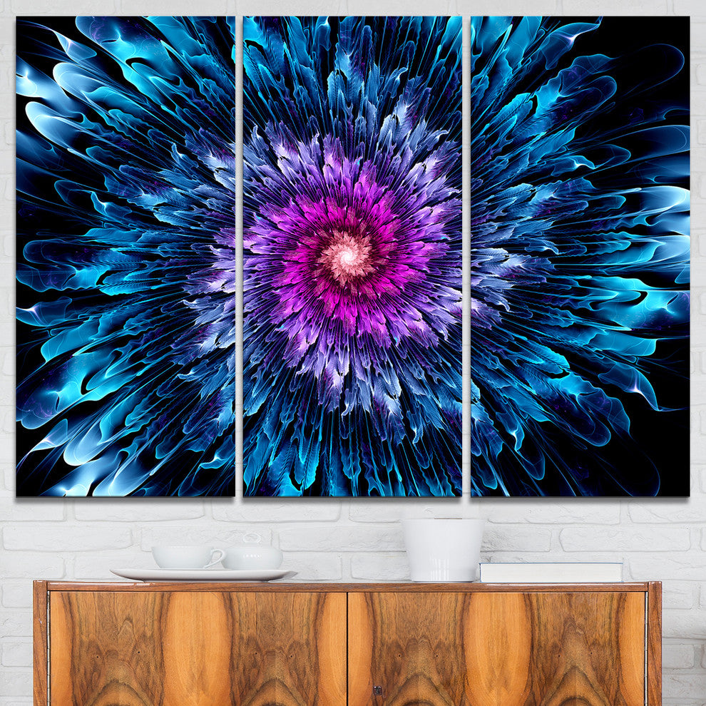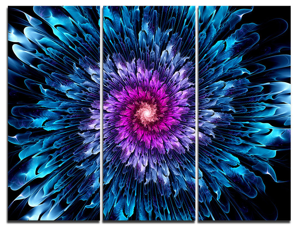 "Magical Glowing Fractal Flower" Digital Wall Art, 3 Panels, 36"x28"