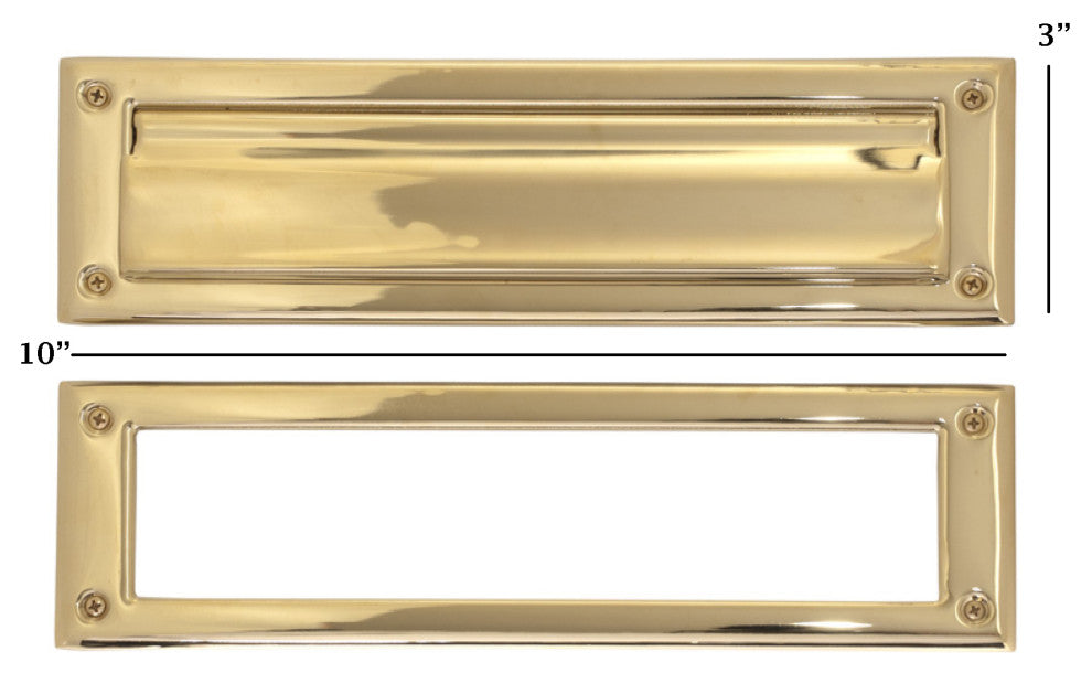Mail Slot is made from solid brass material and available in many finishes. Mail Slot has an external spring loaded flap on the exterior and a frame on the interior. Installation hardware is included making it quick and easy. Enhances the overall appearance of any Entryway. Hole size required is 2-3/8" x 8-3/8" for the 3" x 10" Mail Slots. Center to Center 8 15/16" Horizontal and 11 15/16" Vertical.