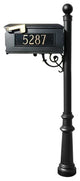 Lewiston Mailbox post system with fluted base, ball finial and 3 cast aluminum personalized address plates , BlackOur Lewiston Mailbox Collection is made of rust-free cast aluminum with a durable weather resistant finish and comes with mailbox, post, support brace, decorative ball finial and fluted base. Mailbox has three cast aluminum address plates that mount to each side and front of mailbox. Mailbox color is black with black address plate (With gold numbers). Two different cast aluminum front plates are available: An address front plate or a decorative Fleur De Lis front plate.Cast aluminum black powder coated mailboxDecorative fluted baseBall finial mounts to top of postAdds an elegant look to your homeProduct Dimension (WxDxH) inch: 8" x 20" x 5'' 2"Color: Black
