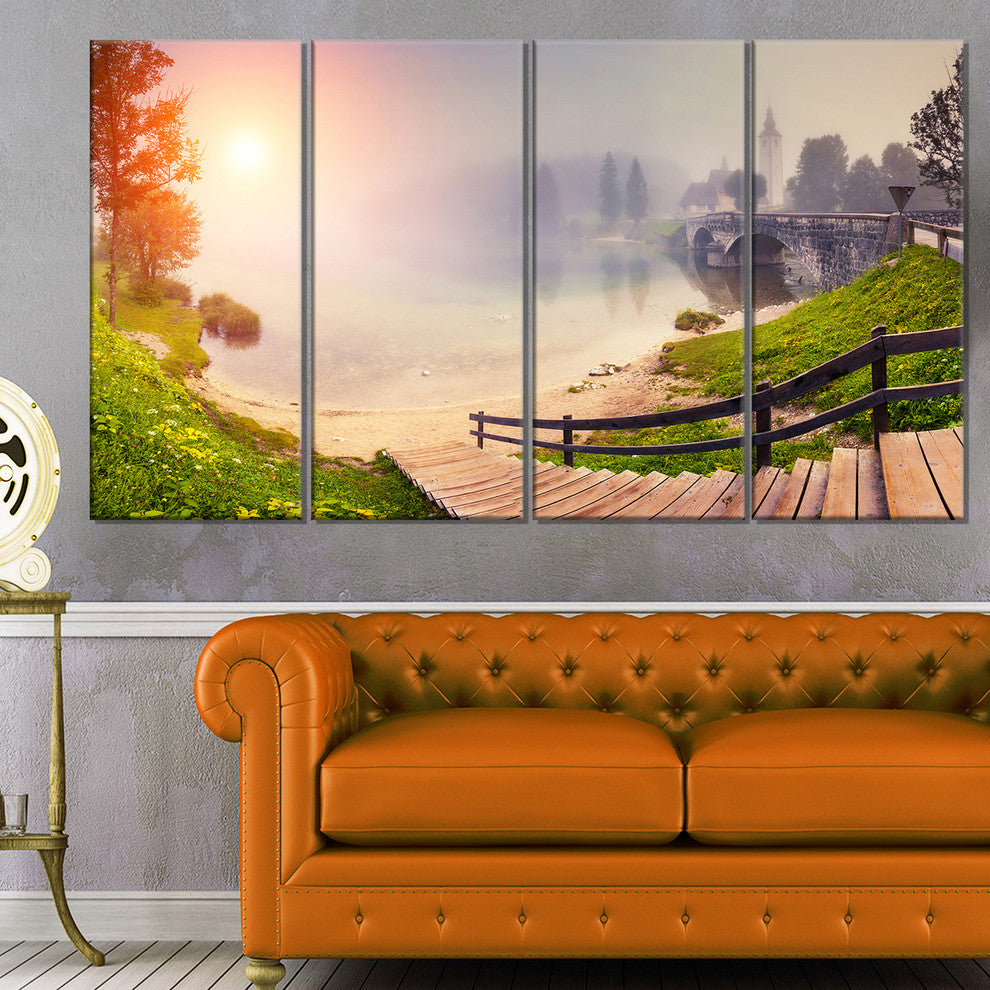 "Majestic Foggy Morning in Lake" Landscape Wall Art, 4 Panels, 48"x28"