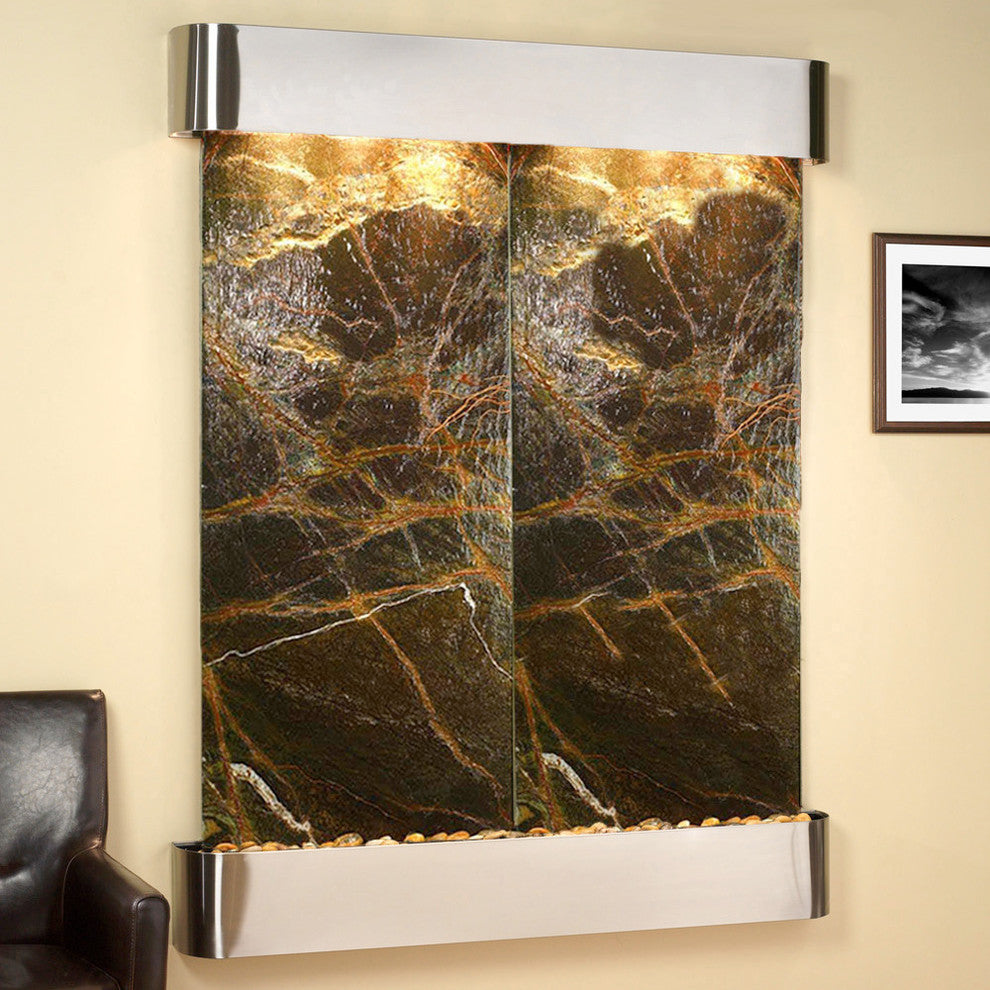 Majestic River Water Fountain, Green Marble, Stainless Steel, Round Edges