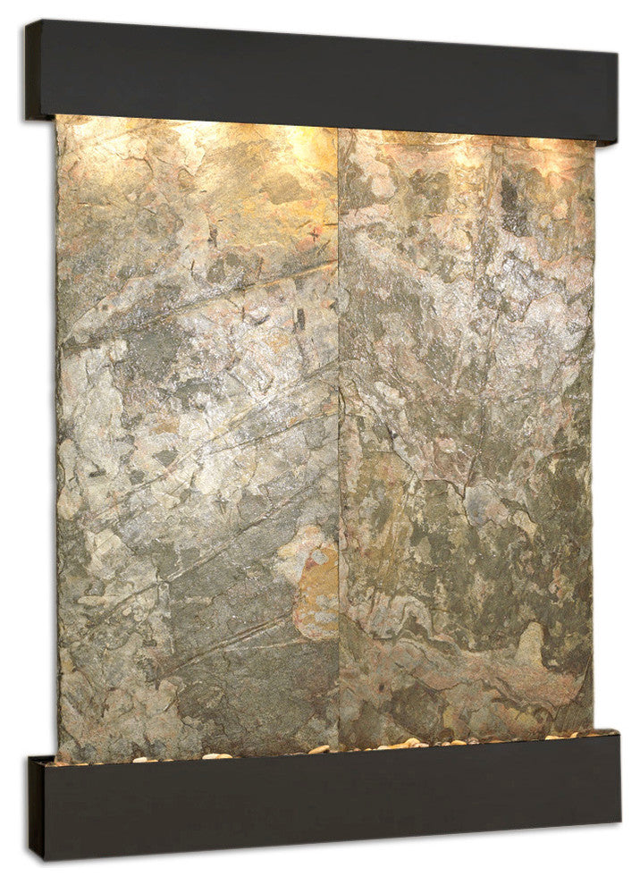 Majestic River Water Fountain, Green Slate, Blackened Copper, Square Edges