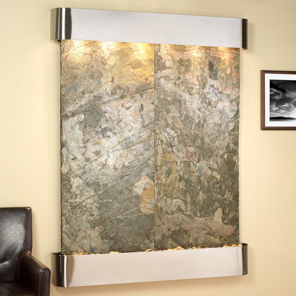 Majestic River Water Fountain, Green Slate, Stainless Steel, Round Edges