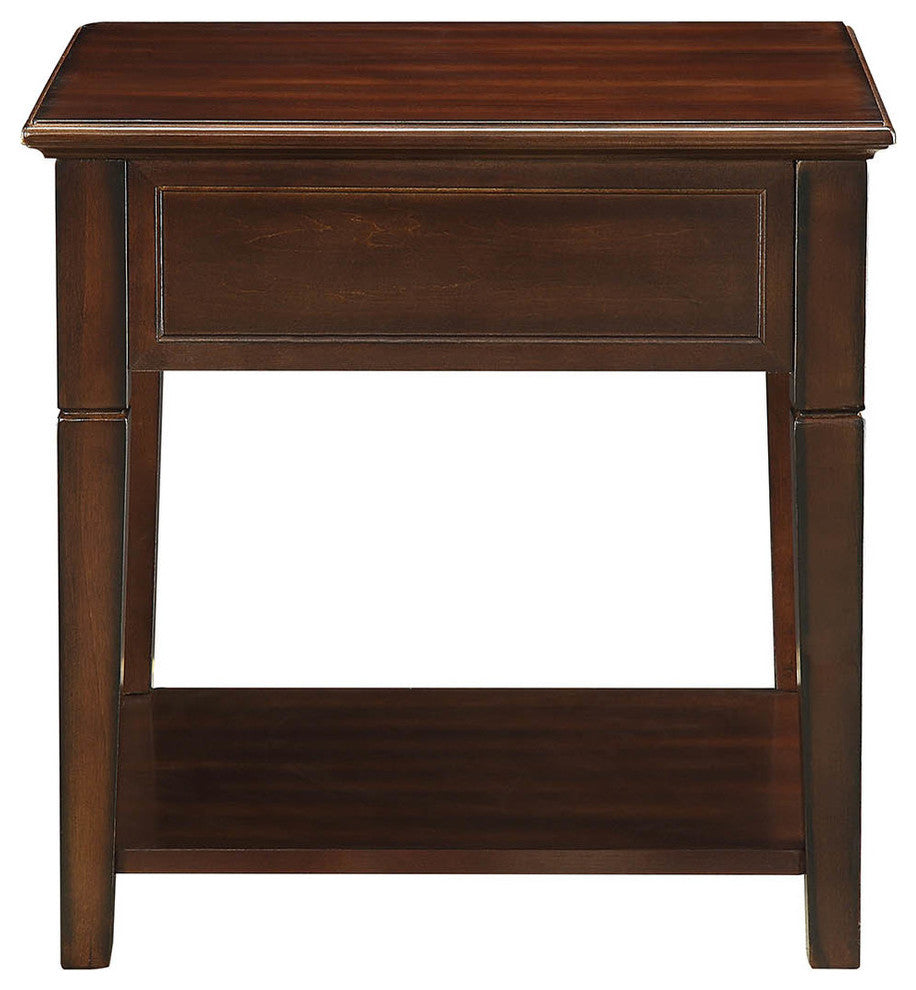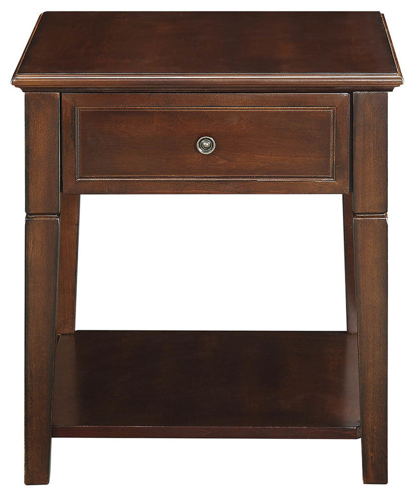 Add a lovely touch to your home decor with this walnut finish occasional table. It adds simple design to your cozy living room. This piece measures at 22 inches wide by 24 inches deep by 24 inches tall.Features:Finish: Walnut FinishMaterial: Wood, Veneer (Wood), Composite Wood• KD, Square Leg ET• 1 Drawer (GL: Center)• Open Storage: Bottom Shelf• Wooden Fixed Top & Bottom Shelf Board• Wooden Top & Apron: 7" (179mm)• Wooden Tapered Leg & Bottom ShelfDimension:Product Dimensions: 22"L X 24"W X 24"HNet Weight: 44 lbsPackage Dimensions: 26.5"L X 24.5"W X 10"HGross Weight: 49 lbsPackage Type: ISTA-3AShip Type: GROUND
