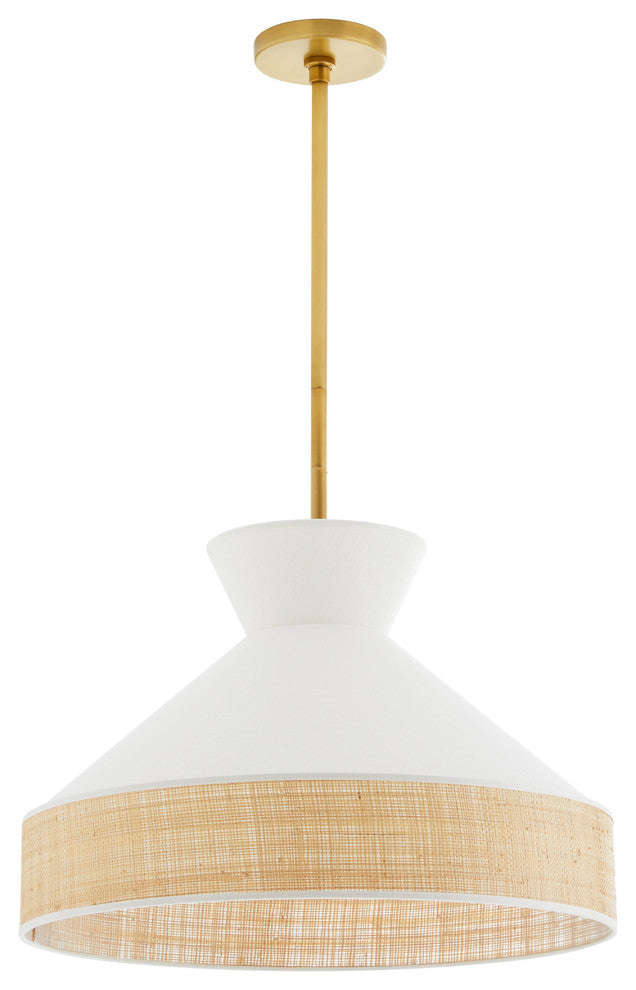 A nod to modern Bauhaus design, the Malena combines organic materials and mid-century form. The shallow but angular silhouette of the shade houses a single globe bulb and is constructed of white linen with a natural rattan trim that offers texture to its otherwise clean, airy aesthetic. Additional pipe available (PIPE-101). Damp-rated, although limited outdoor covered areas may affect finish.
