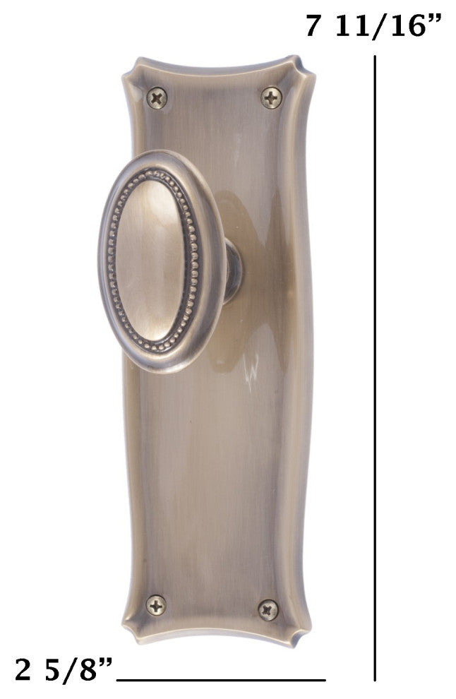 A faithful reproduction of the 1899 Russell & Erwin. It is a timeless design from the Colonial School. No matter what finish you choose, this will look gorgeous in many style of homes. Displayed with a Revere knob. All finishes are hand rubbed & assembled in the USA.