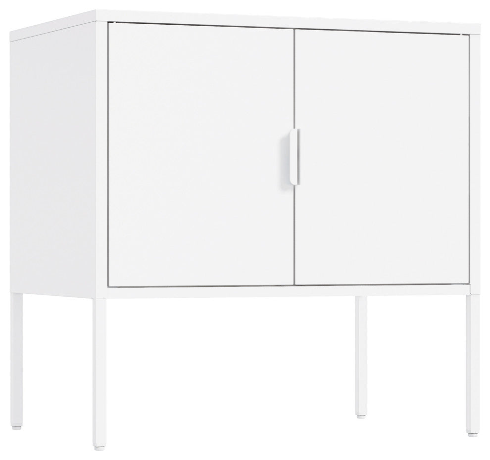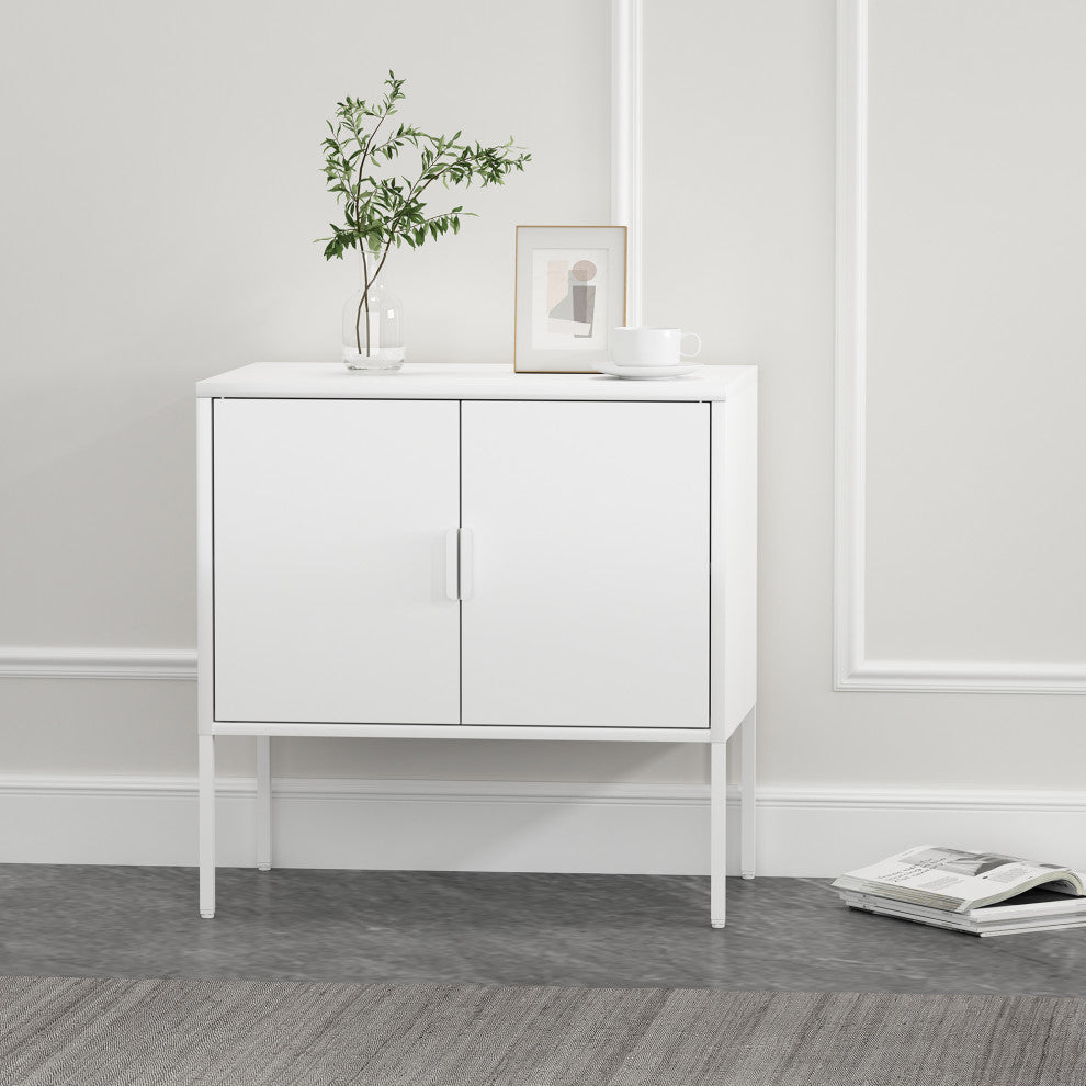- Modern Metal Accent Cabinet Perfect for Storage and Organization.