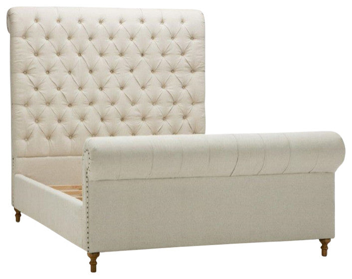 The ultimate retreat. Get the best night''s sleep with this plush bed frame. Fully cushioned and upholstered, its classic allover button tufting looks luxuriously inviting. Clean lines and neutral colors keep it elegant. The ultra-high headboard and rolled edges create a dramatic profile, turning your bed into a soft sanctuary you cant wait to sink into. For complete comfort, try accenting with the Chateau Modern Tufted Sofa or Loveseat.